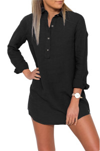 - Product Name: Black Button Neck Long Sleeve Shirt Dress