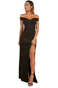 - Product Name: Black Off Shoulder Sweetheart Neck Side Slit Evening Dress
