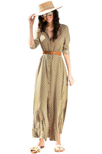 - Product Name: Olive Green Polka Dot Buttoned Maxi Shirt Dress