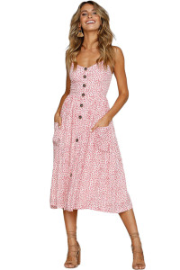 - Product Name: Pink Dotty Print White Buttoned Sundress