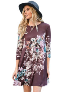 - Product Name: Plum Purple Floral Long Sleeve A-Line Tunic Dress