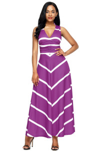 Wherever you go, V Neck Cut out Back Printed Maxi Dress is your confidant to accompany. It’s to totally change you an awesome appearance. You’re effortlessly looking curvaceous and elegant in this maxi, all the body shapes and ladies love it. It’s closefitting the upper bodice while the long skirt is waving. V neck front, cut out back with buttons on nape. The chevron stripes works efficiently on an hourglass silhouette. Don’t forget your stiletto heels.