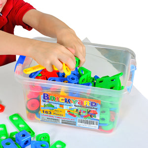 STEM Construction Engineering Building Kits come in a reusable clear storage box, making cleanup after play fast and convenient. Putting all the pieces back in the box is part of your children's play, so you never have to clean up after them.