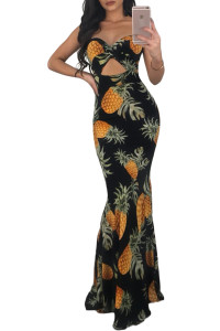 • Product Name: Tropical Queen Pineapple Print Fitted Long Dress